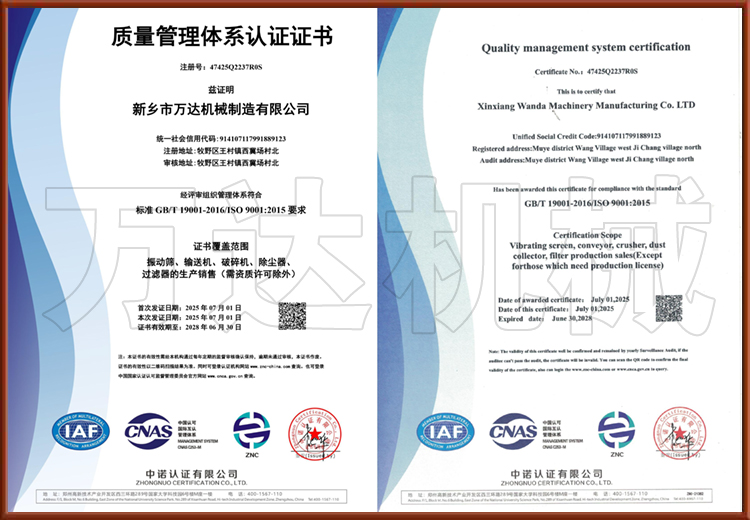 - 金年会机械·资质荣誉WANDA MACHINERY